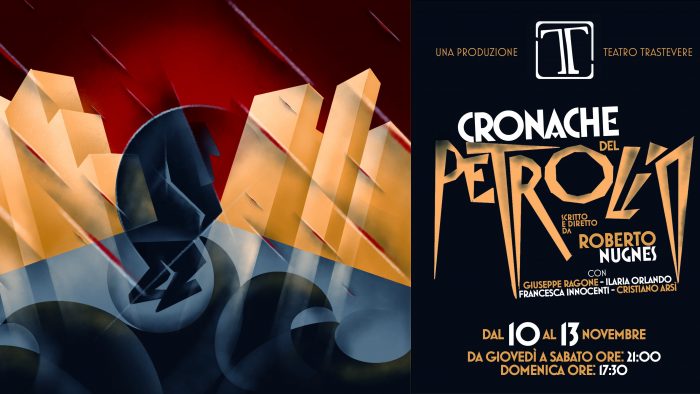 Cronache del petrolio, attraverso il racconto di accadimenti altamente improbabili, si fa carico di voler raccontare i tempi moderni, in particolar modo il consumismo esasperato. Non si sfugge alla macchina, sosteneva Gilles Deleuze, e noi ne siamo parte integrante, anelli collegati di una interminabile catena di montaggio. Le due storie, “Big Crunch” e “Storia d’Aurora”, si soffermano su questi aspetti e il loro rapporto con la fede; la messa in scena è inoltre formata da proiezioni video che vanno ad integrarsi e a sostenere il racconto.