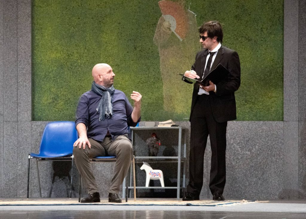 Nello studio di produzione si susseguiranno ben dieci personaggi interpretati ora da Marco Marzocca, ora dall’eclettico Leonardo Fiaschi, che daranno vita alla nostra storia con continui colpi di scena, rivelando sempre tenendo al centro il cuore del racconto: il complesso rapporto tra il padre Notaio e il figlio Stefano.