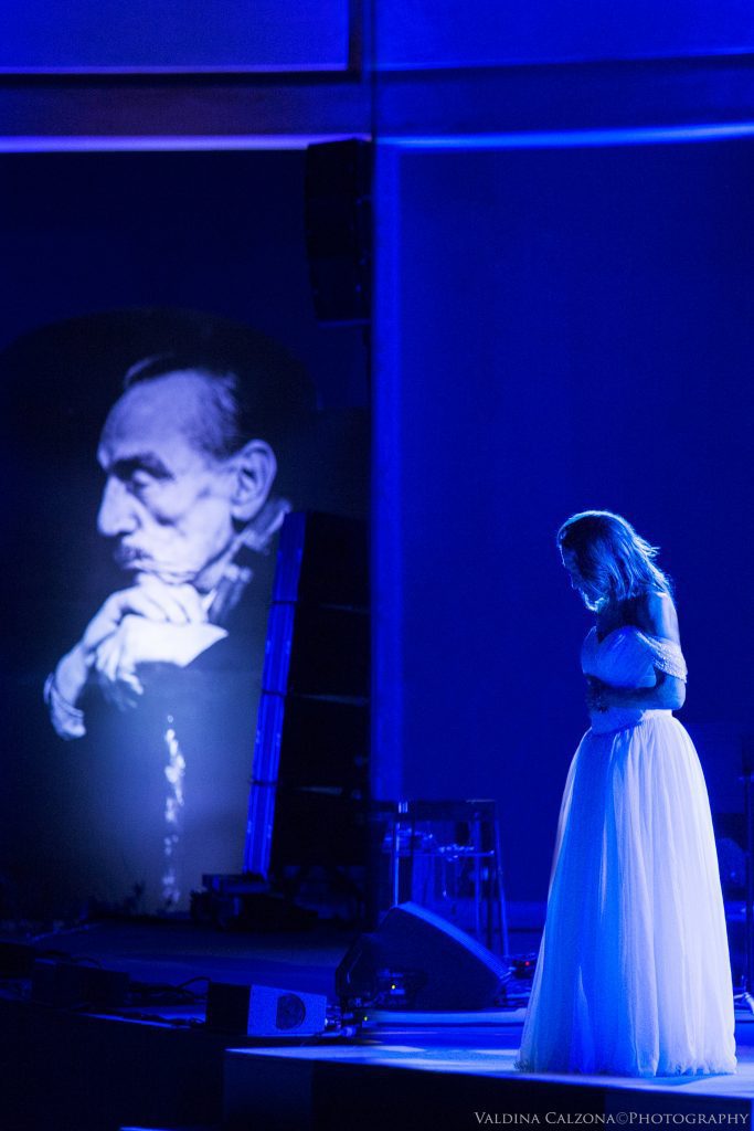 “Spettacolo in parole, musica e poesia che racconta il << mio Eduardo >> attraverso i miei ricordi personali della sua conoscenza in teatro e nella vita. L’ uomo Eduardo attraverso lettere, poesie e qualche citazione delle sue opere. Il tutto accompagnato dalla musica. Che lui molto amava”.