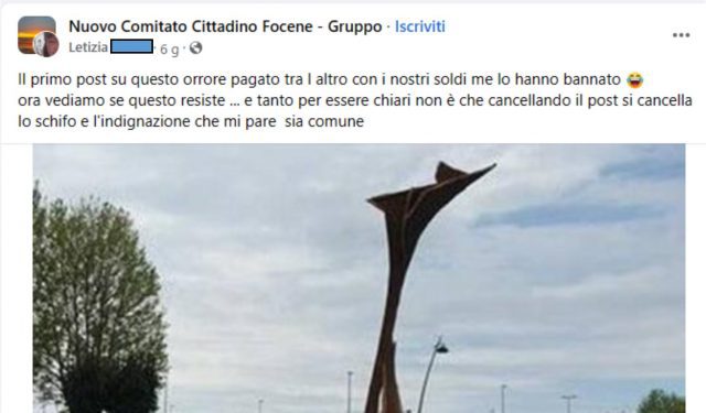 “Ma come si fa a non chiamarla zampa d’oca? Pare che abbiano sotterrato un’oca con una zampa di fuori…400.000 euro spesi così” dice Massimiliano su Facebook.