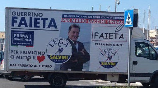 Brutto episodio questa mattina presto. A fuoco il camion con i manifesti elettorali di Guerrino Faieta della Lega