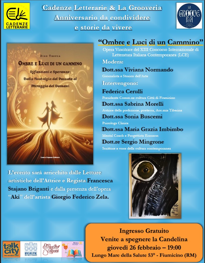 Al centro della serata ci sarà l’opera “Ombre e Luci di un Cammino”, pubblicata da Laura Capone Editore e vincitrice del XIII Concorso Internazionale di Letteratura Italiana Contemporanea.