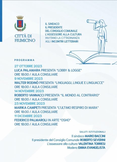 Cinque gli “incontri letterari” con gli autori Luca Palamara, Walter Rodinò, Marika Campeti, Roberto Vannacci e Federico Palmaroli, in arte “Osho”.