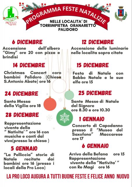 Il programma completo degli eventi che animeranno il Natale di Torrimpietra, Granaretto e Palidoro: luminarie, concerti e tanto divertimento!