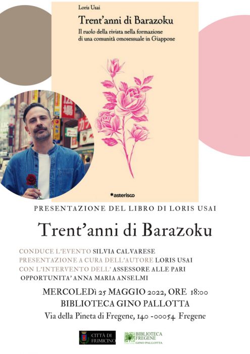 “E’ con piacere che invito i cittadini a partecipare Mercoledì 25 maggio alle 18.00 presso la Biblioteca Pallotta di Fregene, alla presentazione del libro intitolato “Trent’anni di Barazoku” di Loris Usai”. Lo dichiara l’assessora alle Pari Opportunità, Anna Maria Anselmi.