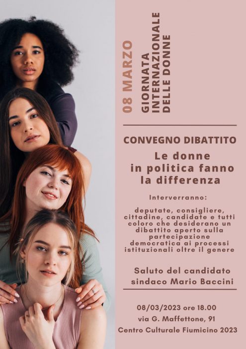 L’8 marzo, in occasione della Giornata internazionale delle donne, si è tenuto a Fiumicino, nel Centro Culturale sito in via G. Maffettone 91, un covegno-dibattito dal titolo “Le donne in politica fanno la differenza”.