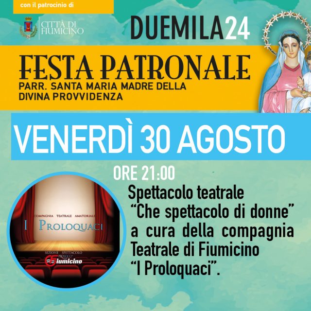 Venerdì 30 alle ore 21:00 spazio invece a “I Proloquaci”, la compagnia teatrale di Fiumicino che metterà in scena l’imperdibile commedia “Che spettacolo di donne”.