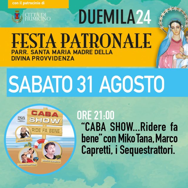 Non mancherà anche quest’anno la serata cabaret, sabato 31 agosto alle ore 21:30, con lo spettacolo “Caba Show… Ridere fa bene” insieme ai comici Mirko Tana, Marco Capretti e iSequestrattori.