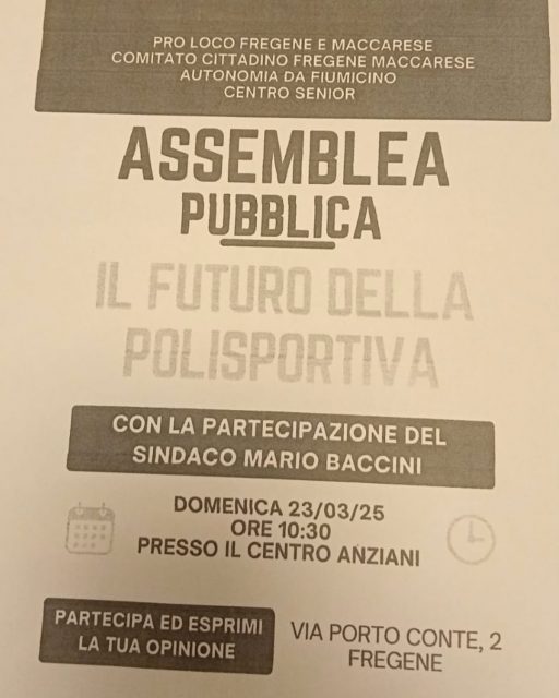 l’associazione Autonomia da Fiumicino e il Centro Senior – convocano un’assemblea pubblica per discutere il futuro della struttura sportiva.