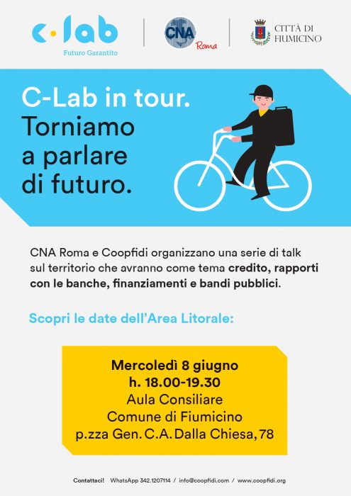 Lo annuncia l’assessora alle attività produttive, Erica Antonelli. “Organizzato da CNA Roma e Coopfidi – spiega – con il patrocinio del Comune di Fiumicino, C-Lab è un laboratorio imprenditoriale, uno spazio dove lavorare insieme e sviluppare in modo aperto e competente strategie per l’innovazione delle imprese e programmare percorsi per poter far fronte alle necessità delle aziende.