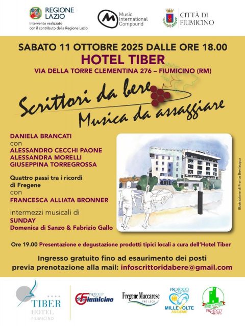 Ultimo appuntamento al Tiber: a Fiumicino quarto e ultimo appuntamento di Scrittoridabere e Musicadassaggiare con ospiti d’eccezione