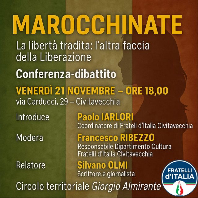 Si è svolto venerdì scorso, nella sede di Fratelli d’Italia Civitavecchia, un convegno molto partecipato dedicato al tema delle “Marocchinate”, le violenze commesse nel 1944 da reparti nordafricani aggregati all’esercito francese.