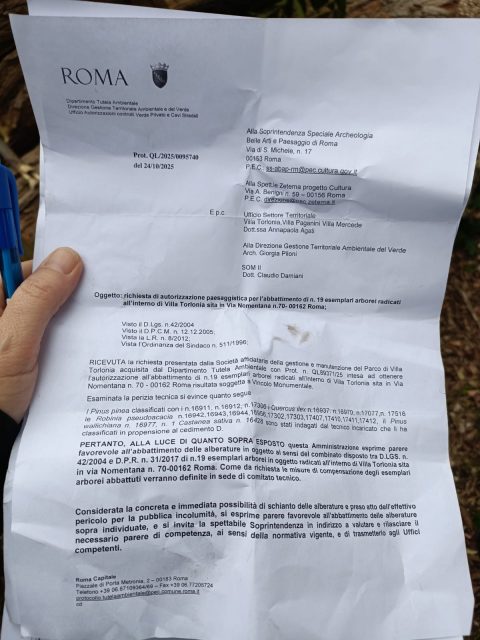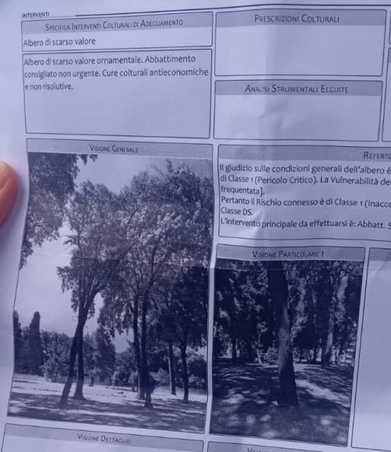 Ma non è tutto. Mentre si segnalavano gli interventi a Villa Torlonia, nel parco Petroselli a Talenti arrivava la notizia dell’abbattimento di 20 pini.