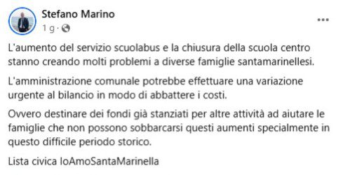 <<Sono lieto di aver letto sul profilo Social del Sindaco che per i bambini del plesso “Centro” lo scuolabus sarà gratuito.