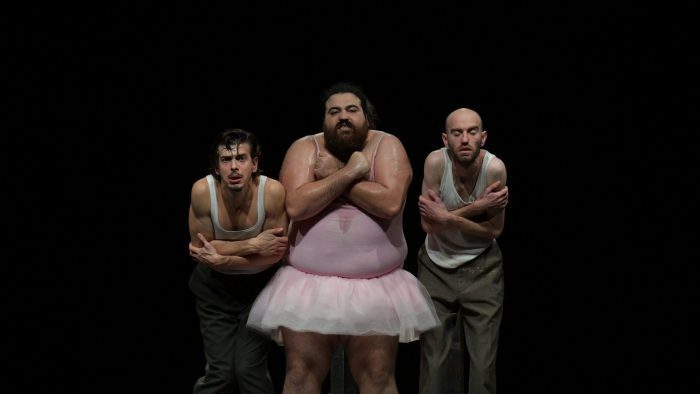I tre attori condividono la scena con grandissima intesa e con l’armonia di fisicità potenti e diversissime che rimangono impresse, suggerendo caratteri poi ribaltati dall’ andamento delle vicende di cui sono protagonisti.