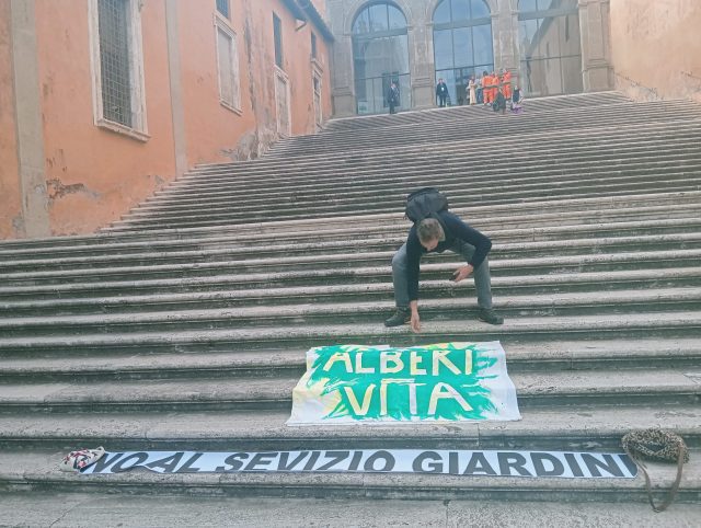 Durante la seduta, in piazza del Campidoglio presenti cittadini, associazioni e comitati a difesa del patrimonio verde della Capitale,