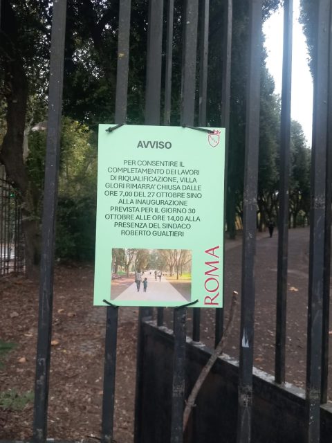 Il 30 ottobre il Sindaco si farà il solito video autocelebrativo in una Villa Glori spogliata dei suoi alberi e ricoperta di asfalto e cemento.