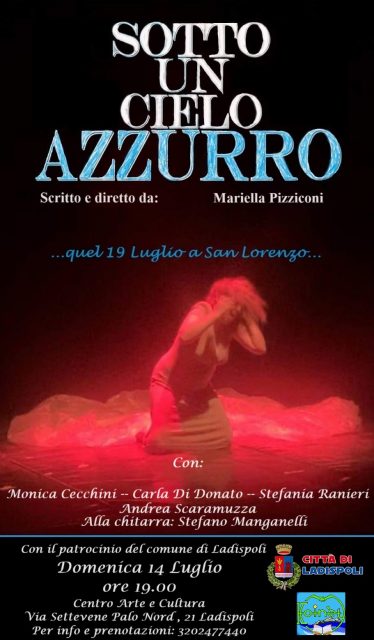 Spettacolo teatrale “Sotto un cielo azzurro”, scritto e diretto da Mariella Pizziconi, domenica 14 luglio presso il Centro di arte e cultura di Ladispoli