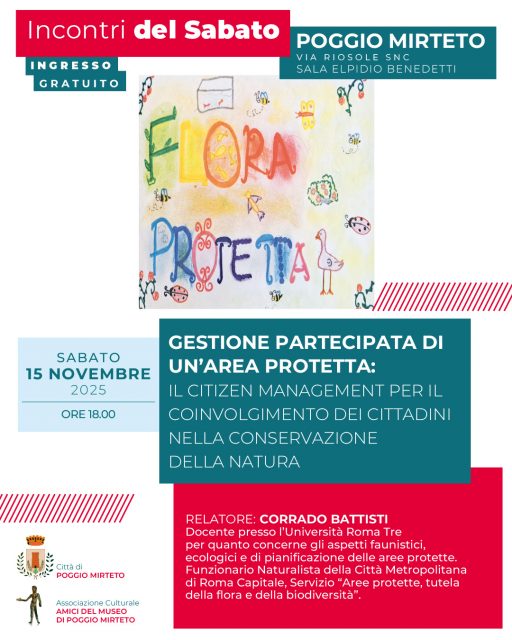 Sabato 15 novembre 2025 alle ore 18, nella Sala Elpidio Benedetti di via Riosole a Poggio Mirteto, si terrà un nuovo appuntamento degli “Incontri del Sabato”.