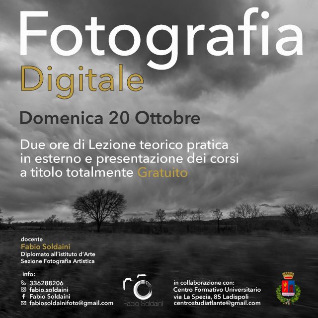 Il 20 ottobre a Torre Flavia una lezione gratuita teorico pratica di fotografia digitale. Lezione e presentazione dei corsi con Fabio Soldaini