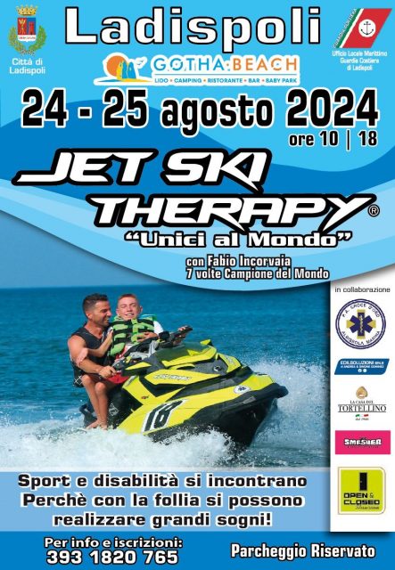Il progetto è nato diversi anni fa con l’obiettivo di far provare a questi splendidi ragazzi emozioni uniche, una scarica di adrenalina pazzesca che renderà questa giornata indimenticabile: 24 e 25 agosto, nella spiaggia libera di Torre Flavia si svolgerà quindi la Jet Ski Therapy.
