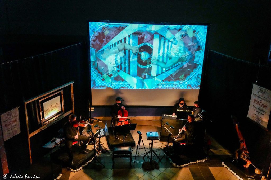 L’evento, concepito e costruito con maestria dal M° Massimo Bacci è stato realizzato grazie alla partecipazione di uno straordinario gruppo di artisti il Medi@ensamble Massimo Freccia, composta dallo stesso Massimo Bacci al violino, Luigi Scognamiglio al clarinetto, Lorenzo Muscolino al violoncello, Rosalba Lapresentazione al pianoforte, Michele Florese al flauto, la voce recitante di Agostino De Angelis e le suggestioni coreografiche di Giacomo Calabrese.