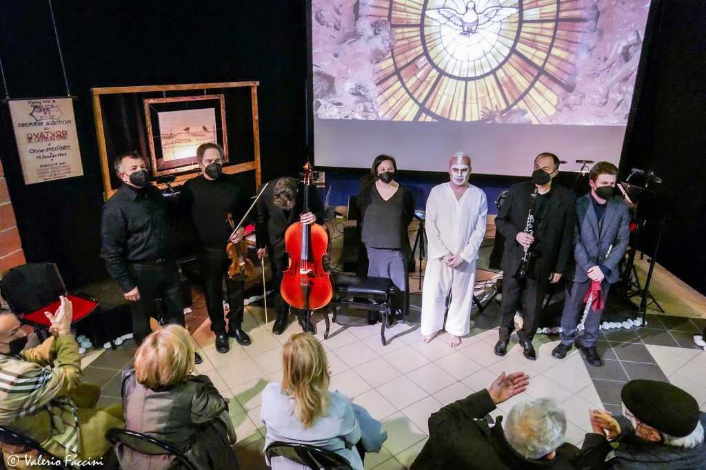 Per entrare a tutto tondo nello spirito di Messiaen, compositore di un’opera all’interno dell’abisso più profondo dell’animo umano, Bacci ha introdotto il concerto proponendo un video originale con scene della terribile tragedia dei campi nazisti e con immagini pittoriche e della natura fuse nella musica di Biasutti, il tutto impreziosito dalla magistrale interpretazione di Agostino De Angelis; si è costruita una tessitura di emozioni avvolgente, unica.