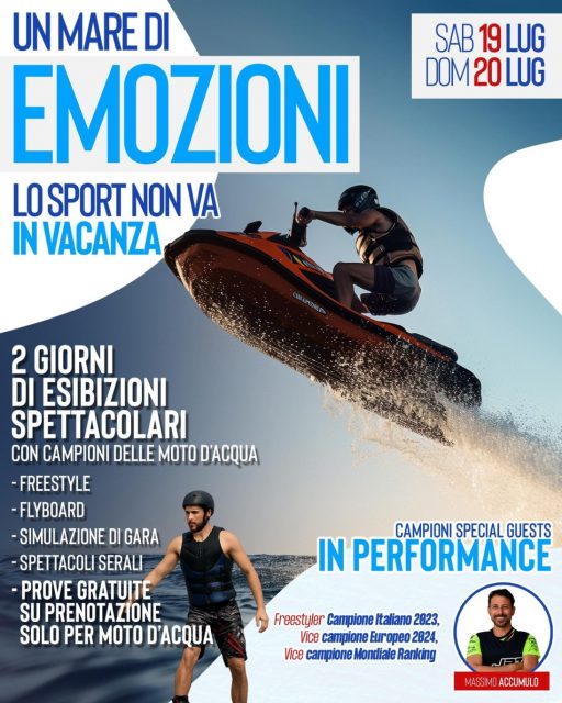 Presenti anche campioni di fama internazionale come Massimo Accumulo (campione italiano di jet-ski) e Davide Pontecorvo (pluricampione italiano di flyboard),