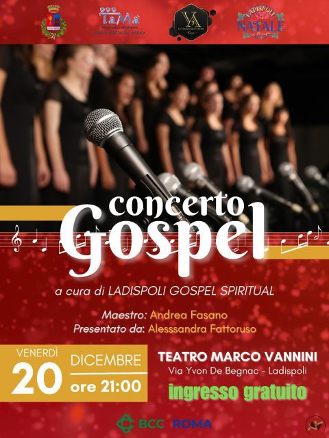 Alle 21:00 un appuntamento da non perdere con la prima esibizione in assoluto del coro gospel di Ladispoli diretto dal maestro Andrea Fasano ed ideato e promosso dall’associazione culturale Tama’ nella persona della Presidente Alessandra Fattoruso.
