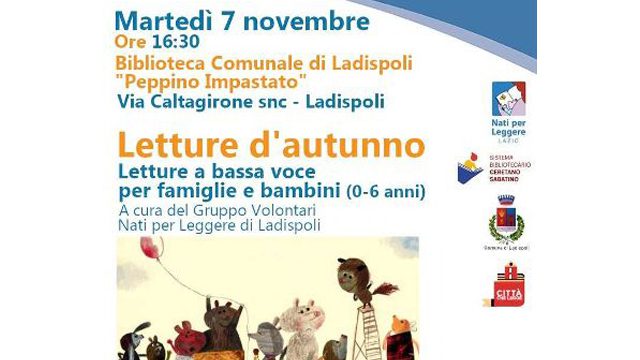 L’amministrazione comunale di Ladispoli informa che torna l’appuntamento mensile con le letture a bassa voce per bambini da 0 a 6 anni a cura del Gruppo Volontari Nati per Leggere di Ladispoli, in collaborazione con la biblioteca.