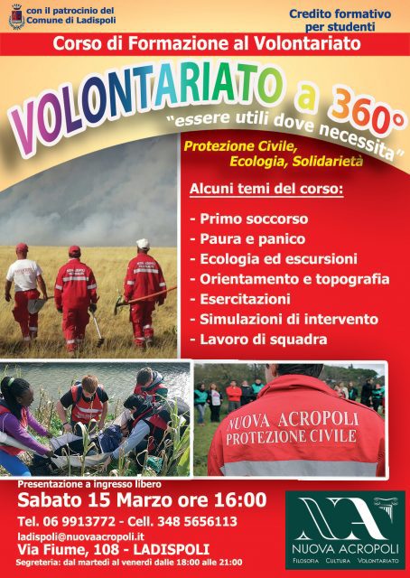 Il “Corso di Formazione al Volontariato a 360°” è patrocinato dal Comune di Ladispoli, un segno di fiducia e di supporto verso le attività formative per la comunità.