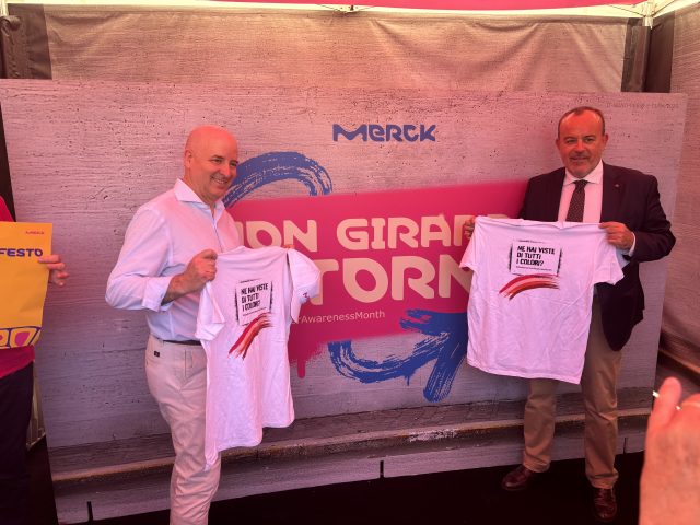 Il presidente del Consiglio regionale Antonello Aurigemma aderisce a Merck Italia durante il Giro d’Italia: “Grazie al personale sanitario e alle associazioni, fondamentale educare alla prevenzione”