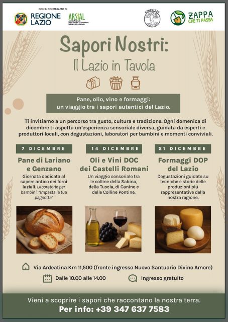 “Sapori Nostri: Il Lazio in Tavola” rappresenta un’occasione unica per scoprire, assaggiare e vivere le tradizioni enogastronomiche che raccontano la storia e l’identità della nostra terra.