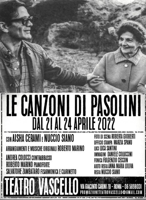 Lo spettacolo concerto “Le Canzoni di Pasolini” con Aisha Cerami e Nuccio Siano – che firma anche la regia – torna a Roma in occasione del centenario, dopo i debutti a Casarsa e a New York.