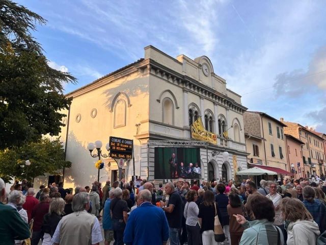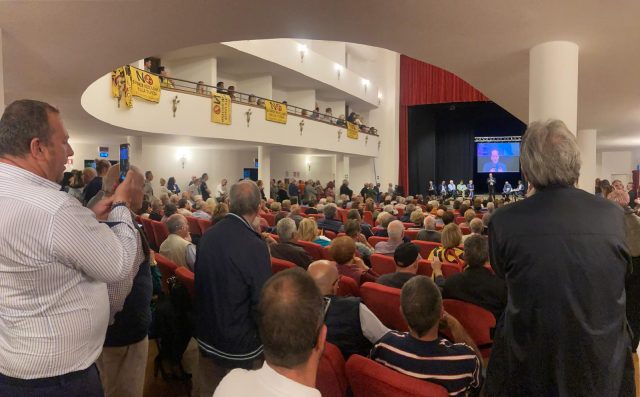 Il teatro comunale è stato riempito fino all’ultimo posto, con tante persone che hanno seguito il dibattito dalla piazza antistante.