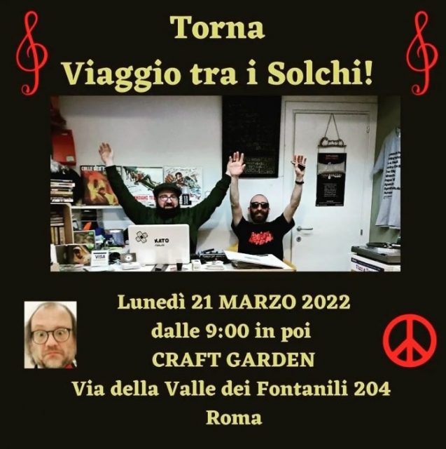 Viaggio tra i Solchi riprende dopo una pausa dovuta agli eventi pandemici ma ora l’unico virus da diffondere sarà quello della musica. Il “nuovo” debutto dello show si avvale di una nuova location: : Craft Garden in Via della Valle dei Fontanili 204 a Roma e il via sarà alle ore 21:00 di lunedì 21 marzo 2022
