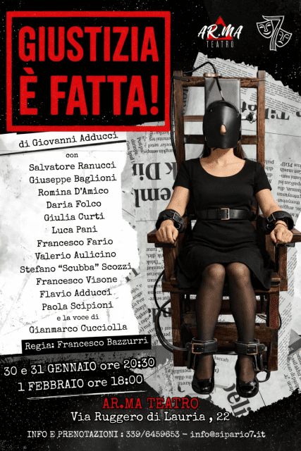 Debutta a Roma “Giustizia è fatta!”, uno spettacolo teatrale realizzato dalla compagnia Sipario7, che attraversa la storia della pena capitale per smascherare i meccanismi del potere e della violenza istituzionale, tratto dal libro del prof. Giovanni Adducci ” Storia di Due Famosi Esecutori di Giustizia”.