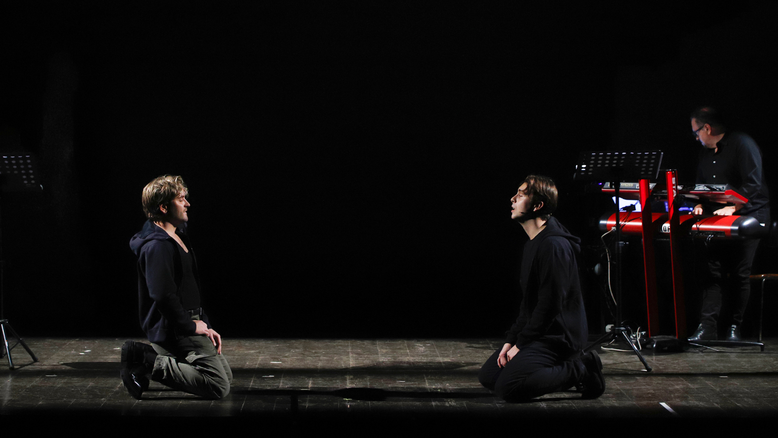 La regia di Enrico Maria Lamanna costruisce una scena essenziale che esalta la tensione emotiva, mettendo in luce il desiderio insopprimibile di un incontro che diventa atto di ribellione contro l’odio dei rispettivi Paesi.