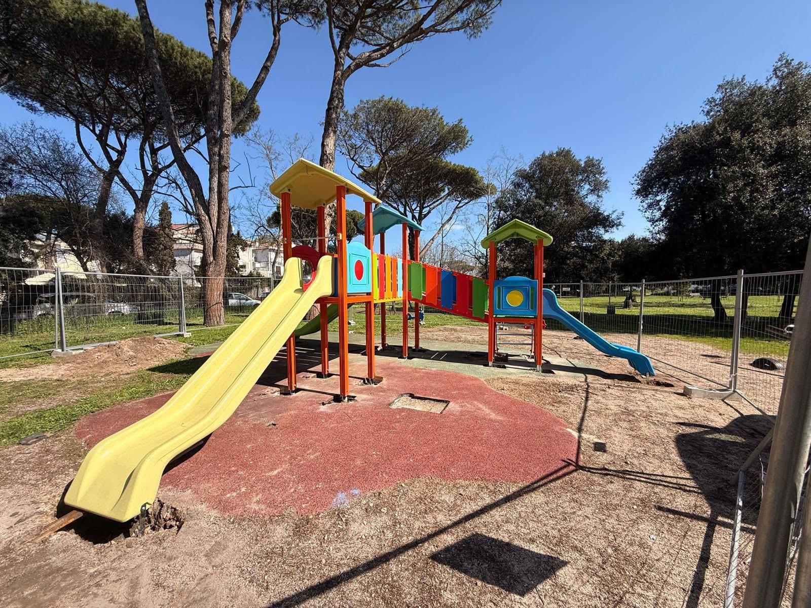 L’intervento prevede l’installazione di nuove giostrine, tra cui altalene, strutture multifunzionali con ponticelli in corda e scivoli, pensate per stimolare il gioco, la socializzazione e il movimento all’aria aperta.