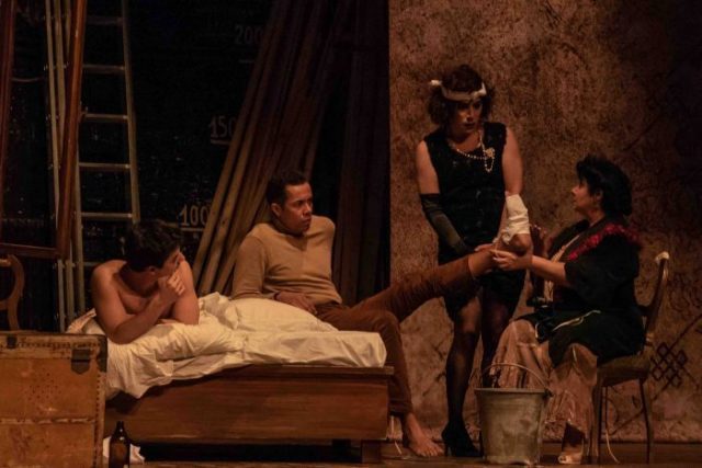 Ne viene fuori una tragicommedia dal sapore post-eduardiano e pre-ruccelliano, col respiro di un periodare socio – poetico, che fra cinismi, grettezze e turpiloqui ci restituisce lo squarcio di un’altra Napoli – non più la cartolina buona per i turisti, ma tutta la sbordante umanità di un “vascìo”, che diventa, immediatamente, un altro mondo, un’altra realtà, una dimensione fuori dal tempo e dallo spazio.
