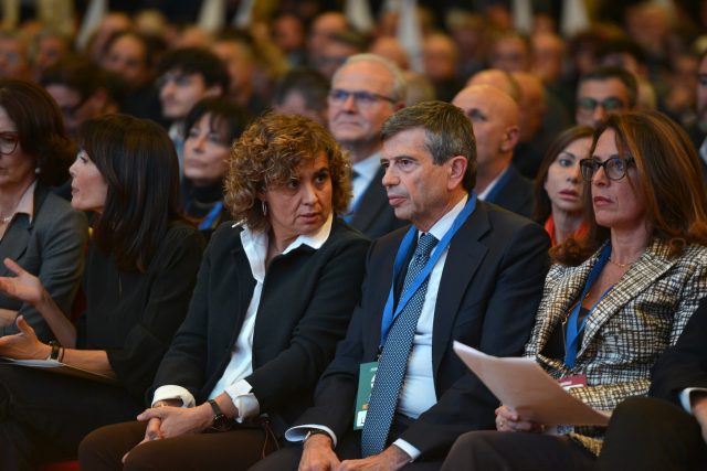 Una prima fila di personalità, con diversi parlamentari e Ministri dei partiti di Governo, e con la Premier Giorgia Meloni che ha fatto un intervento molto applaudito.