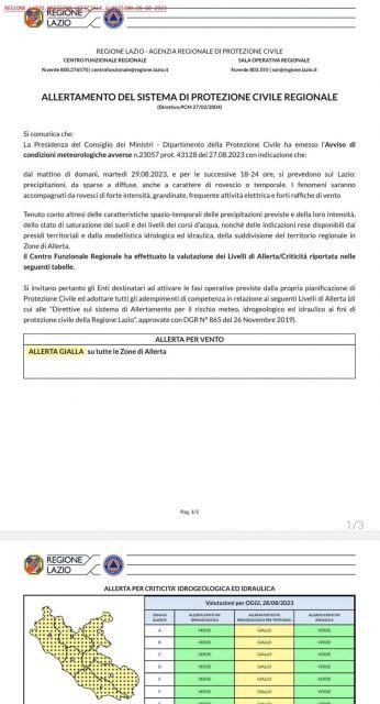 Emanata allerta meteo con indicazione che dal mattino di domani e per le successive 18-24 ore, si prevedono sul Lazio.