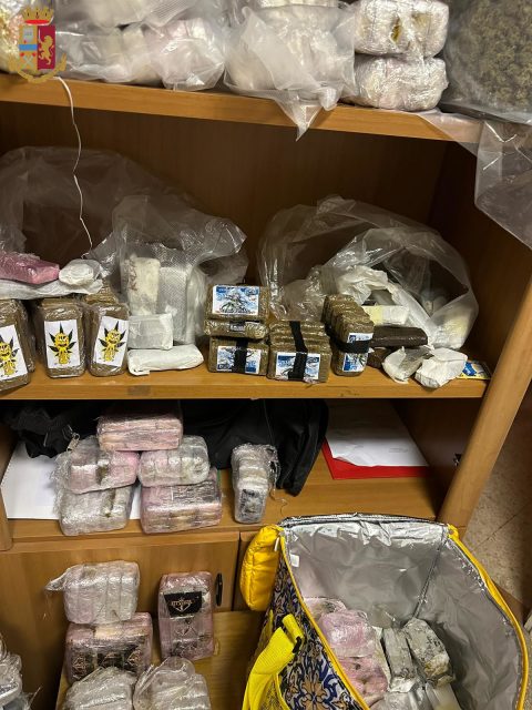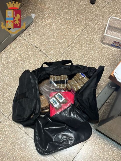 Gli uomini del commissariato, recatisi successivamente presso l’abitazione dello stesso, dove all’interno vi era anche una donna, hanno svolto una perquisizione domiciliare rinvenendo circa 14 Kg di droga tra hashish e marijuana, oltre a contabilità, materiale per il confezionamento ed un importo di quasi 4 mila Euro, probabile fonte di guadagno dell’attività di spaccio.