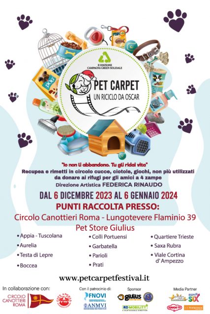 L’iniziativa, promossa dalla Associazione Pet Carpet e ideata dalla giornalista Federica Rinaudo che ne cura la direzione artistica, si pone lo scopo di restituire nuova vita agli accessori pet non più utilizzati che saranno rimessi in circolo, grazie all’amore di tutti coloro che condividono la propria quotidianità con un amico a quattro zampe.