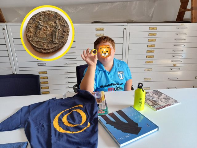 Non una bottiglietta o una caramella dimenticata, ma una vera moneta di bronzo che da quasi 1800 anni aspettava di tornare alla luce.