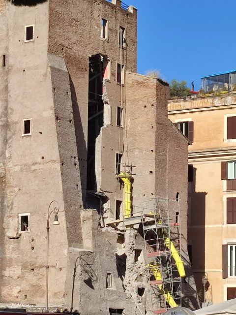 Roma, Largo Corrado Ricci, nella tarda mattinata di ieri, 3 novembre 2025, si susseguono diversi cedimenti e crolli in una torre medioevale , la Torre dei Conti, dove è in corso un cantiere finanziato con i soldi a prestito del PNRR ( 6,9 milioni di euro).