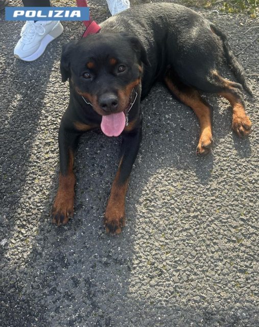 Escursione pericolosa in autostrada per una coppia di rottweiler. Salvati e coccolati dalla Polizia di Stato