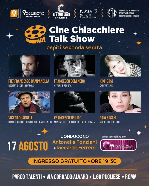 Roma non si ferma mai, nemmeno ad agosto. Al CineVillage Talenti, nel cuore del Parco Talenti di via Corrado Alvaro, prosegue con grande successo il talk-show che sta animando le calde serate estive della Capitale.