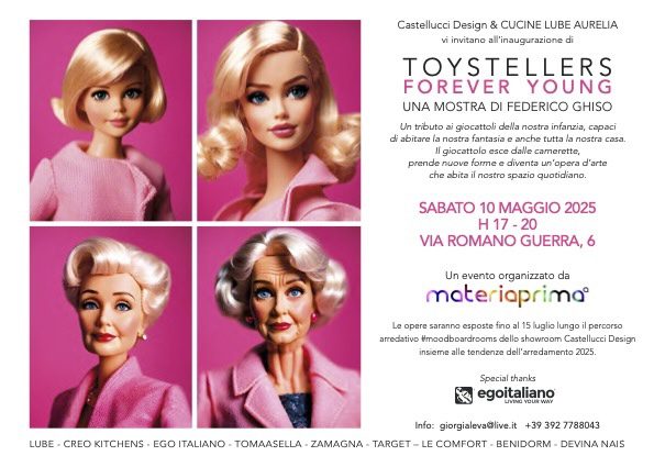 TOY STELLERS Forever Young, la mostra di Federico Ghiso che ritrae i giocattoli resi bambini grazie all’intelligenza artificiale, entra nel mondo del design con un’esposizione presso lo show room di Castellucci Design Cucine Lube Aurelia a Roma dal 10 maggio al 15 luglio.