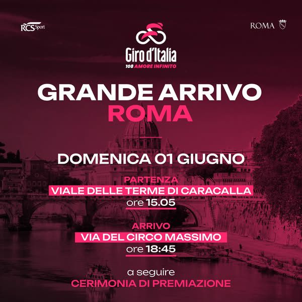 Oggi, domenica 1° giugno, si chiude la 108ª edizione della Corsa Rosa con una giornata carica di simboli, emozioni e spettacolo.